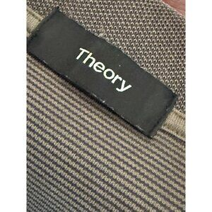 Theory Mens Gray Green Striped Polo Shirt Lightweight Breathable Comfort Size M
