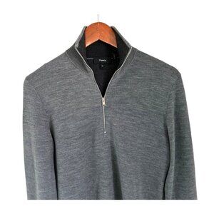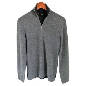 Theory Mens Gray Half-Zip Sweater Merino Wool Long Sleeve Modern Fit
