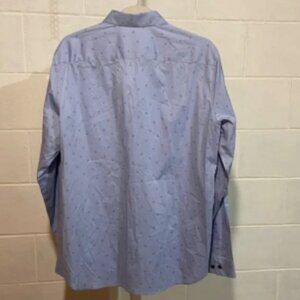 Theory Mens Irving LS Dress Shirt Large Blue Circle Pattern Career Wedding NWT