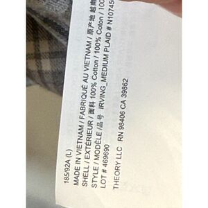 Theory Men's Ivory Size Large Multi Irving Medium Plaid Woven Button Up Shirt