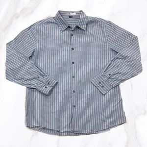 Theory Men's Kale Np Blue Pinstriped 100% Cotton Button Down Shirt, Size XL