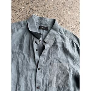 Theory Men's Medium Top Teal Linen Button Down Lightweight