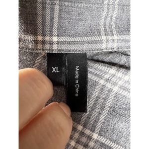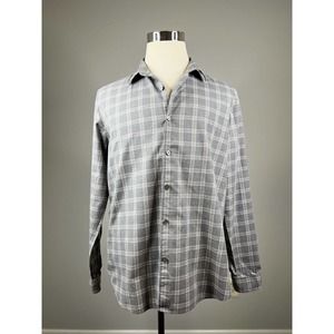 Theory Men’s Plaid Grid Flannel Button Down Shirt Size XL Cream Gray