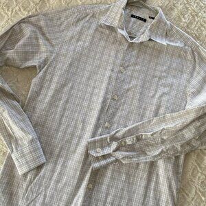 Theory Men's Plaid Windowpane Longsleeved Buttonup Large 16 Shirt Professional