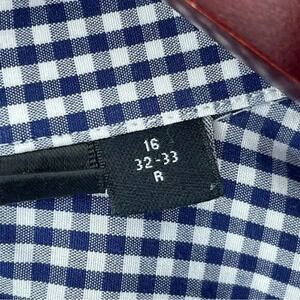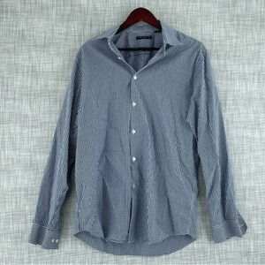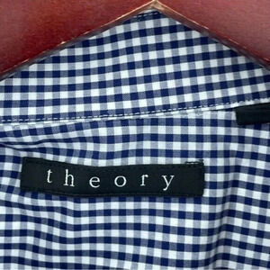 Theory Mens Size 16 gingham blue Long Sleeve Button Down Shirt 0578
