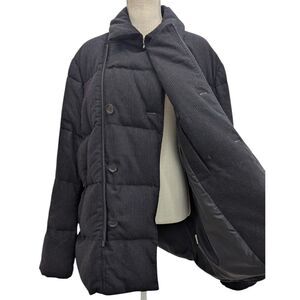 Theory Men's XXL Teddy Rush Double Breasted Down Puffer Coat Wool Blend in Black
