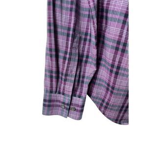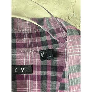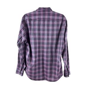 Theory Mens Zack Plaid Casual Button Up Collared Long Sleeve Shirt Large Purple