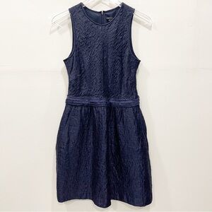 Theory Mildra Linden Fit & Flare Wool Blend Dress Navy Blue Textured Size 6