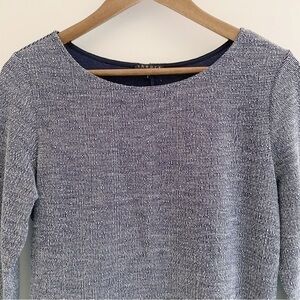 Theory Mimi H. Plentiful Tweed Mini Dress Large Blue White 3/4 sleeves boat neck side zipper chest 18" length 34" Condition: Excellent pre-owned condition with no flaws