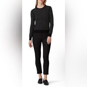 ✨Pre, loved, excellent condition! Theory Mini Black and White Polka Dot Wool Knit Sweater- soft and timeless crewneck sweater styled with classic ribbed trims in a mini polka dot printed knit (98% Wool). Long sleeves.