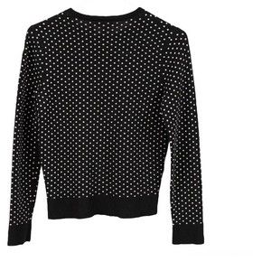 Black and white printed knit (98% Wool, 2% other fibers). Sweater. Long sleeves. Crew neckline.