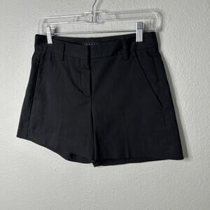 Theory Mini Shorts Women’s Size 2 Black Mid Rise Flat Front Pockets Cotton
