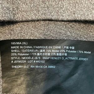 Theory Modal Cotton Core Henley Shirt Gray Pestle Melange Long Sleeve XL
