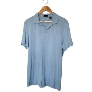Theory NEW Willem Flame Subtle Striped Short Sleeve Slub Jersey Polo Blue Medium