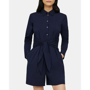 Theory NWOT Stretch Cotton Tie Waist Romper Navy Blue Size 4