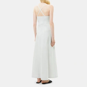Theory NWT Haranna Cross-Back Dress in Linen Blend Mélange Light Grey Size 10