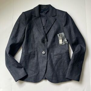 Theory NWT Zaylin Blazer Fern Virgin Wool Blue Multi 2 Button Size 00
