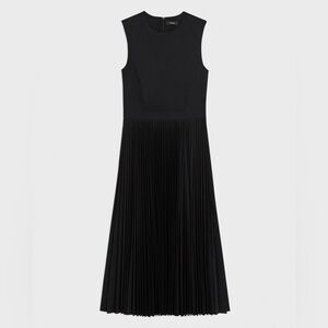 Theory NWT Pleated Midi Dress in Sleek Poplin Black Size 4