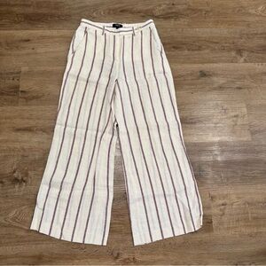 Theory Nadeema Stripe Red and White Wide Crop Wide Leg Capri Linen Pants Size 0