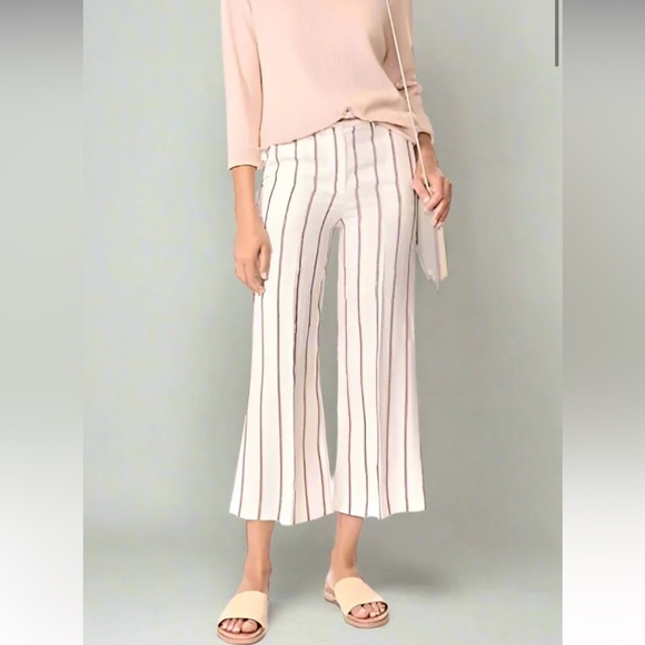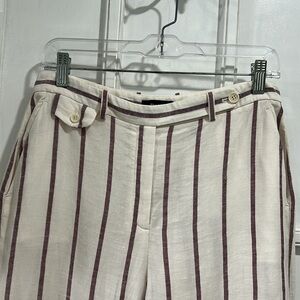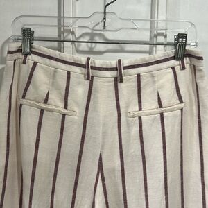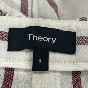 Theory Nadeema Wide Leg Striped Crop Linen Pants in Cream/Maroon Stripe - 8