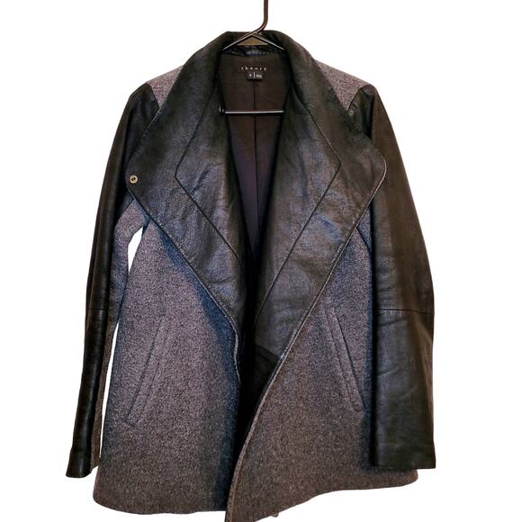 Theory Naomo womens grey wool and black leather snap front coat size small