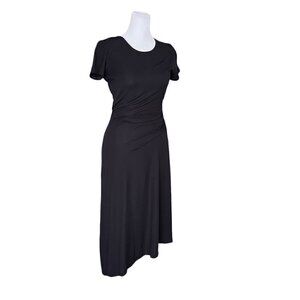 Theory Navy Blue Jilaena Side Ruched Jersey Midi Dress Size Small