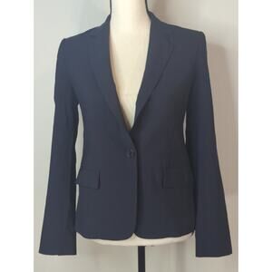 Theory Navy Blue Wool Blend Single Breasted One Button Blazer Corporate Size 2