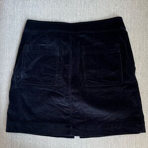 Stylish navy corduroy skirt featuring a front zipper. Perfect for casual outings.