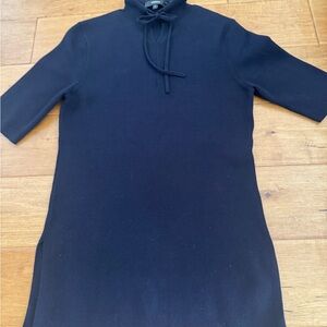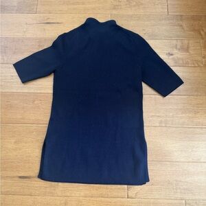 Theory navy mock crew neck sweater. Features short sleeves and a tie detail.