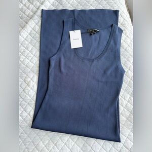 Chic navy midi dress by Theory. Sleeveless design with a flattering fit. Ideal for versatile styling.