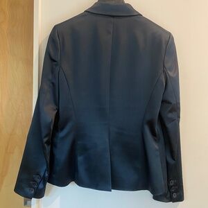Classic and timeless, this Theory silky two-piece suit features a structured navy blazer and coordinating trousers—perfect for work, interviews, or any occasion that calls for elevated style.