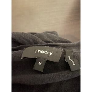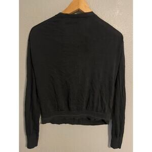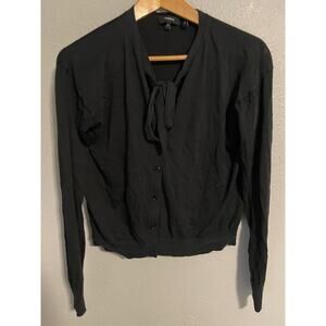 Theory Neck Tie Cardigan Sweater Womens Medium Black Silk Cotton Blend Cropped