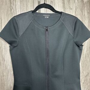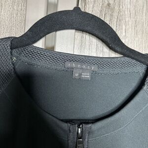 Theory Neoprene Dress Black Color Full Zip Peplum Short Sleeves Career