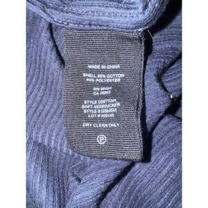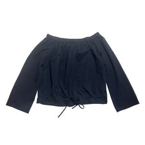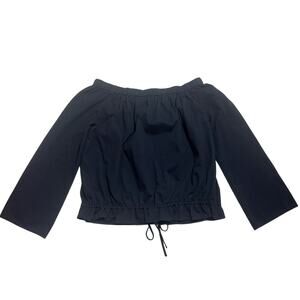 Blouse with elastic collar that goes off-the-shoulder. Elastic drawstring cinched waist. Ribbed. Dark blue. Long sleeves. Shorter cropped length. 56% cotton, 44% polyester. Excellent preowned condition EUC, no flaws. Professional, highly rated seller, quick shipper, open to offers!