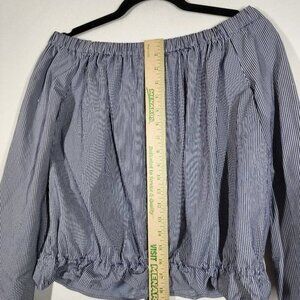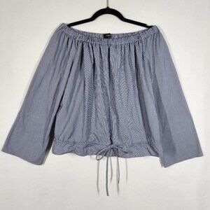 Theory Odettah Seersucker Off the Shoulder Top Blue White Stripe Summer Coastal