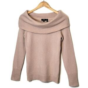Theory Off The Shoulder Long Sleeve Wool Blend Light Pink Pullover Sweater Size S