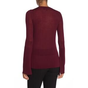 Theory Opaque Cuff Crew Eaglet Knit Merino Wool Top Maroon Small New