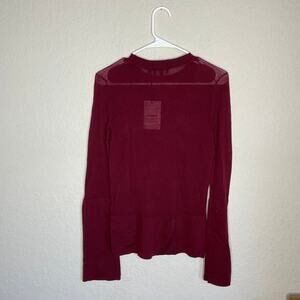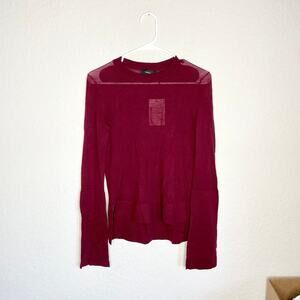 Theory Maroon Opaque Cuff Crew Wool Top Sweater Sz S