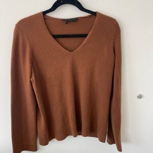 Theory Orange Cashmere V Neck Sweater