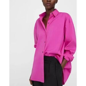 Theory Oversized Hot Pink 100% Cotton Button Down Shirt Sz M/L