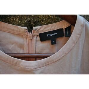 Elevate your wardrobe with this timeless sleeveless dress by Theory. Crafted in a soft pale pink hue, this classic fit-and-flare silhouette flatters the figure with subtle structured seaming and clean lines. It features a hidden back zipper, round neckline, and a soft cotton blend that's ideal for layering or wearing solo in warmer weather. Perfect for work, brunch, or everyday elegance.