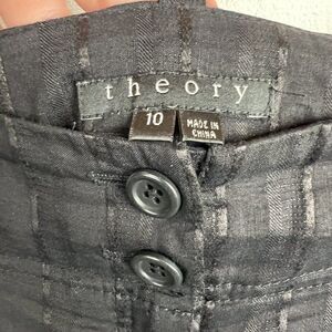 Theory Pants 10 Womens Black Striped Slacks Straight Pockets Career Cropped