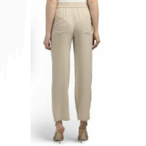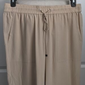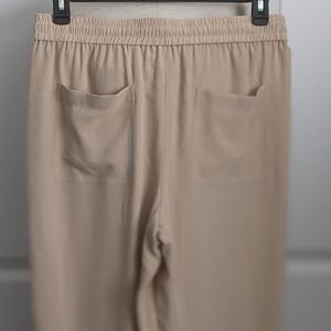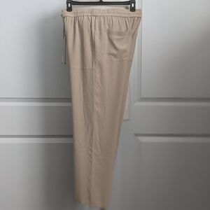 Theory Pants 100% Silk High Waist Drawstring Pull On Pockets Light Tan L NWT