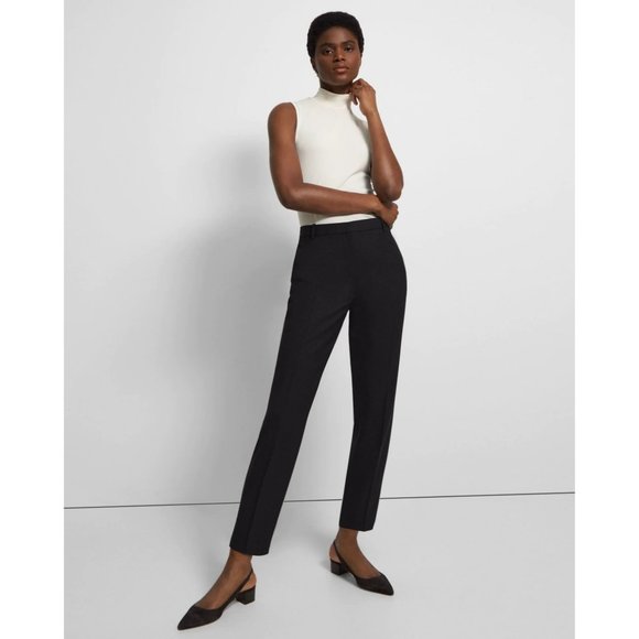 Theory Pants Straight Leg Ankle Cotton Trousers Career Classic Black 2