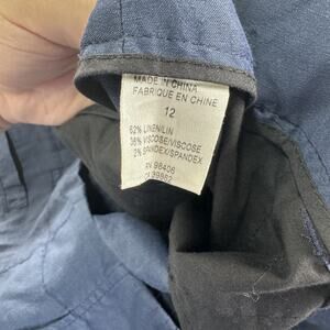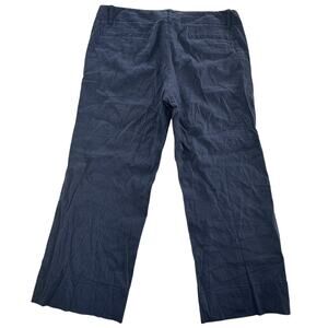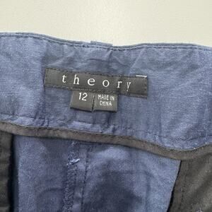 Theory Pants Womens 12 Navy Blue Linen Blend Wide Leg Stretch Dress Trousers