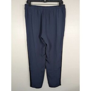 Theory Pants Womens Large Jesha Silk Blue Tuxedo Sheer Skinny Leg Drawstring