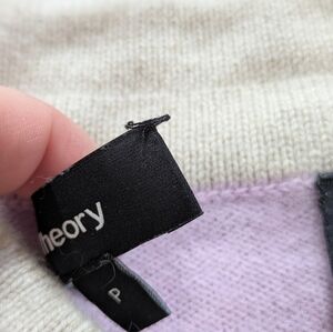 Theory Pink Blue Brown Striped High Neck Cashmere Sweater S. Some pilling and one stain on the front bottom, haven't tried removing (see photo). Drawstring neck and waist.