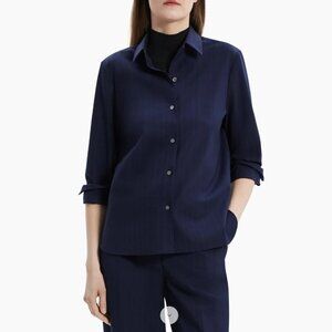 Theory Pinstripe Button-Front Shirt, Size M, Like New