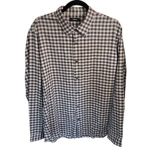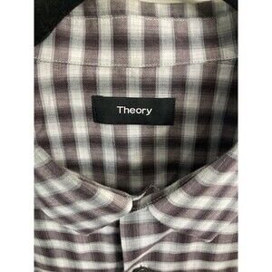 Theory Plaid Men’s Button Down Shirt Size XL Purple Gray‎ Check