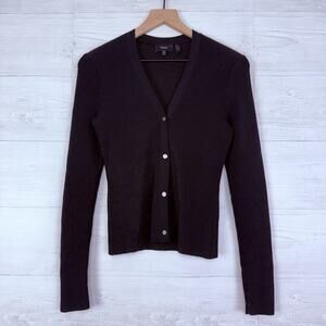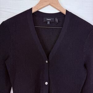 Theory Cardigan, Theory Compact Crepe, Theory Metallic Sweater, Theory Black Cardigan, Plaited Knit Cardigan, Theory Women’s Small, Luxury Ribbed Sweater, Theory Evening Cardigan, Minimalist Knitwear, Designer Black Sweater